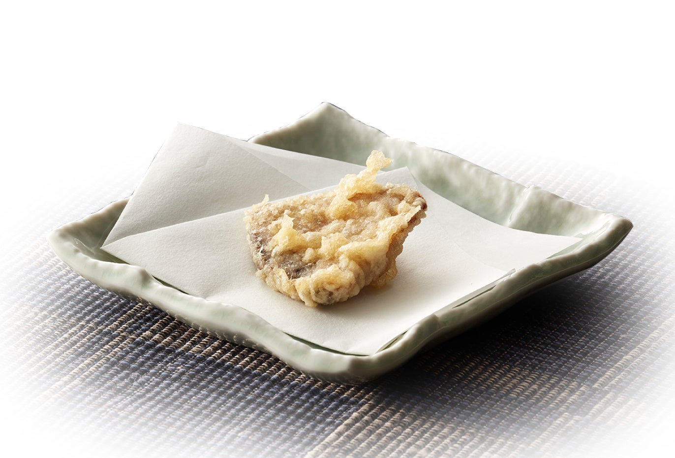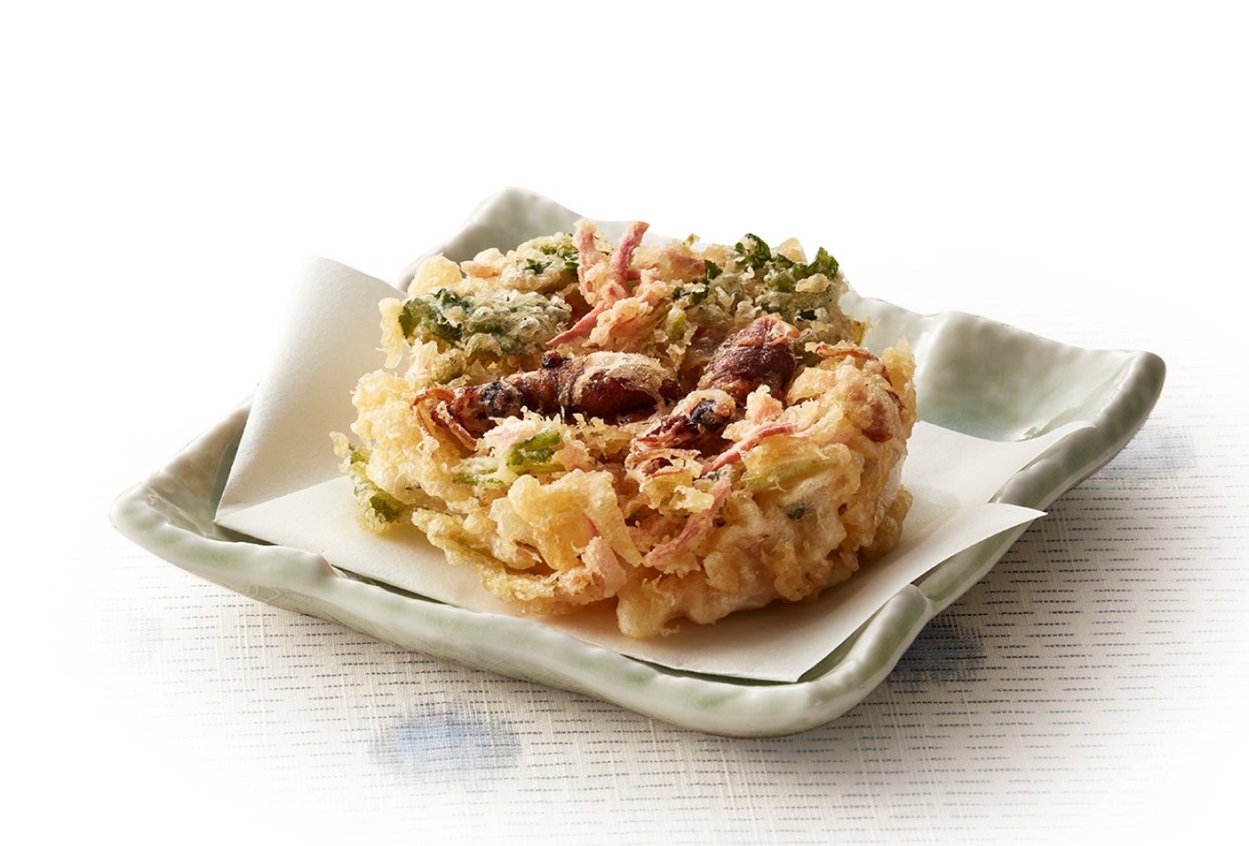 てんやでは、この小ぶりなサイズを活かして、旨みのつまった「かき揚げ」と小鉢に仕上げました。