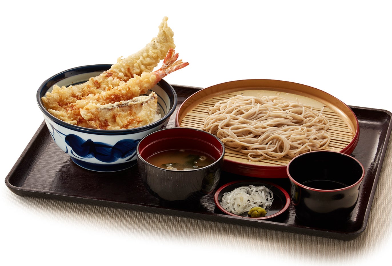 天然車海老のごちそう天丼 小そば(小うどん)セット 1,280円