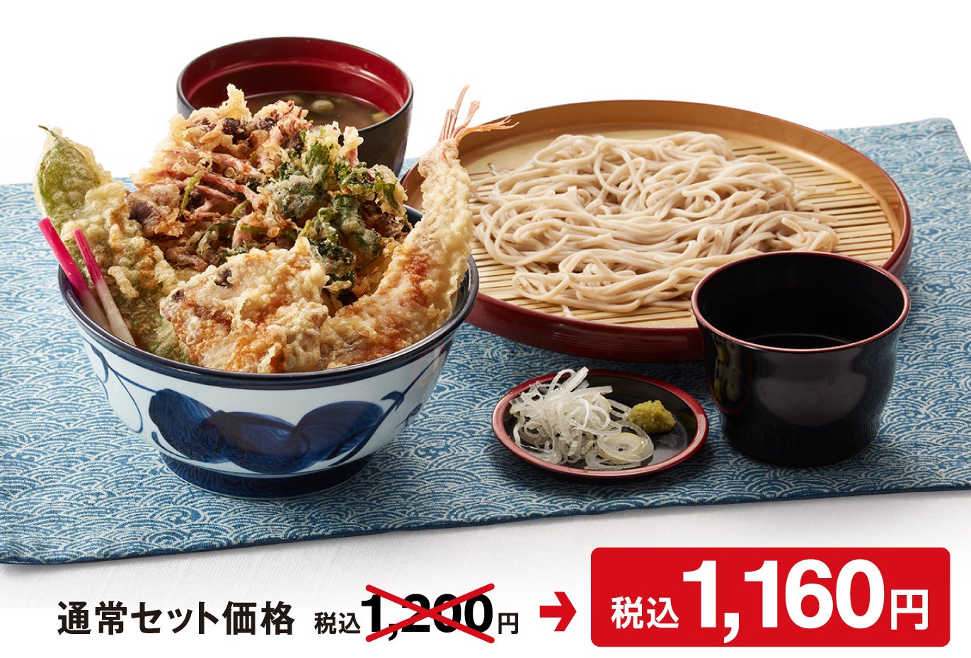初夏天丼サービスセット 通常セット価格 1,200円→サービスセット価格 1,160円