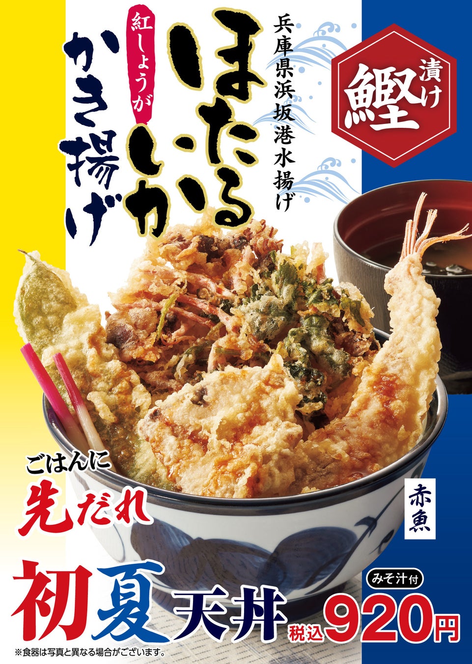 天丼てんや初!旬の味覚「ほたるいか」をかき揚げに『初夏天丼』が期間限定で登場 兵庫県産ほたるいか使用、初夏限定メニューを4月20日(木)より販売
