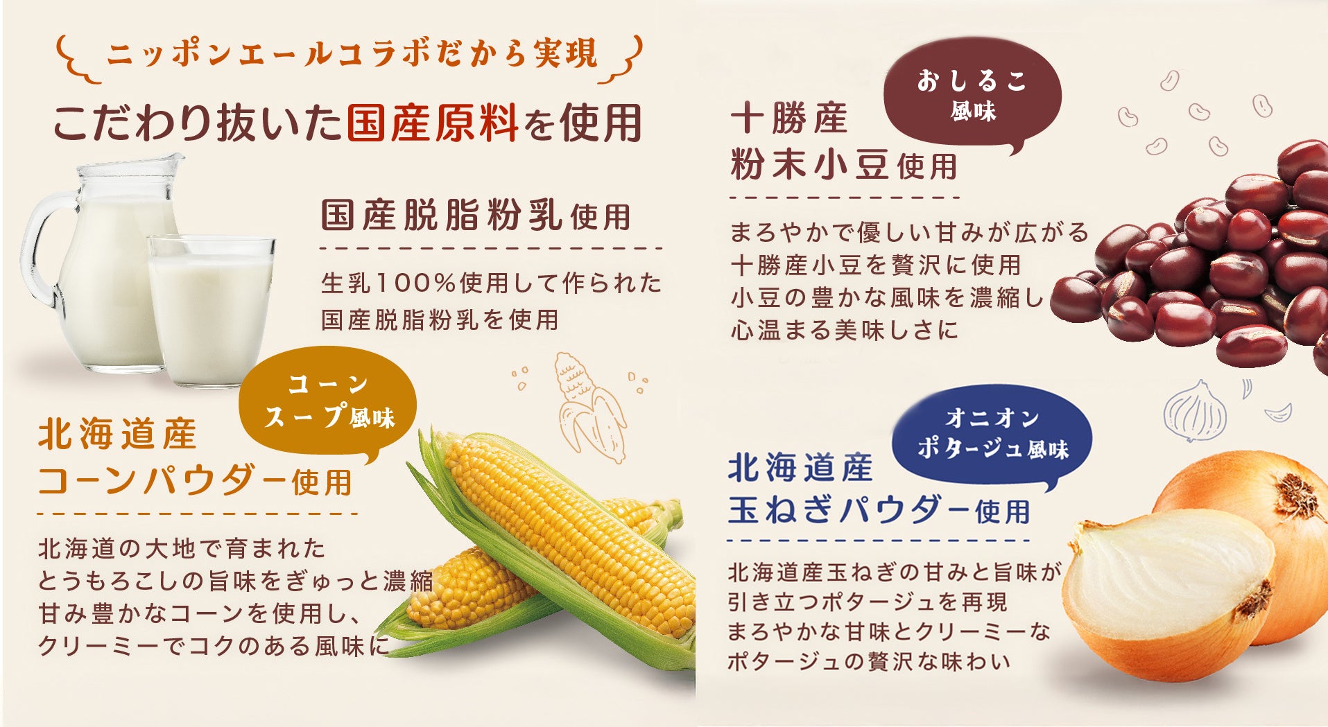 THE PROTEIN × ニッポンエール 〈おしるこ風味〉〈オニオンポタージュ風味〉〈コーンスープ風味〉