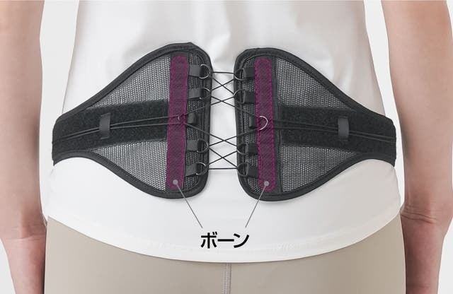 腰部分に平行に2本のボーンが内蔵されています。程よい弾力で腰のラインにぴったりフィットしてしっかりサポートします。