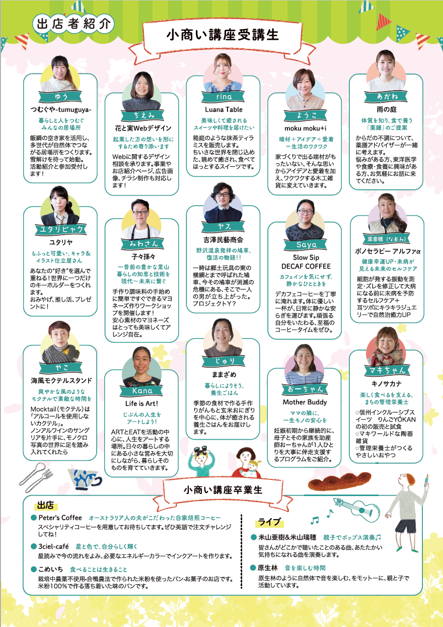 •内容: 小商い講座受講生、卒業生、地域有志による出店・音楽ライブ