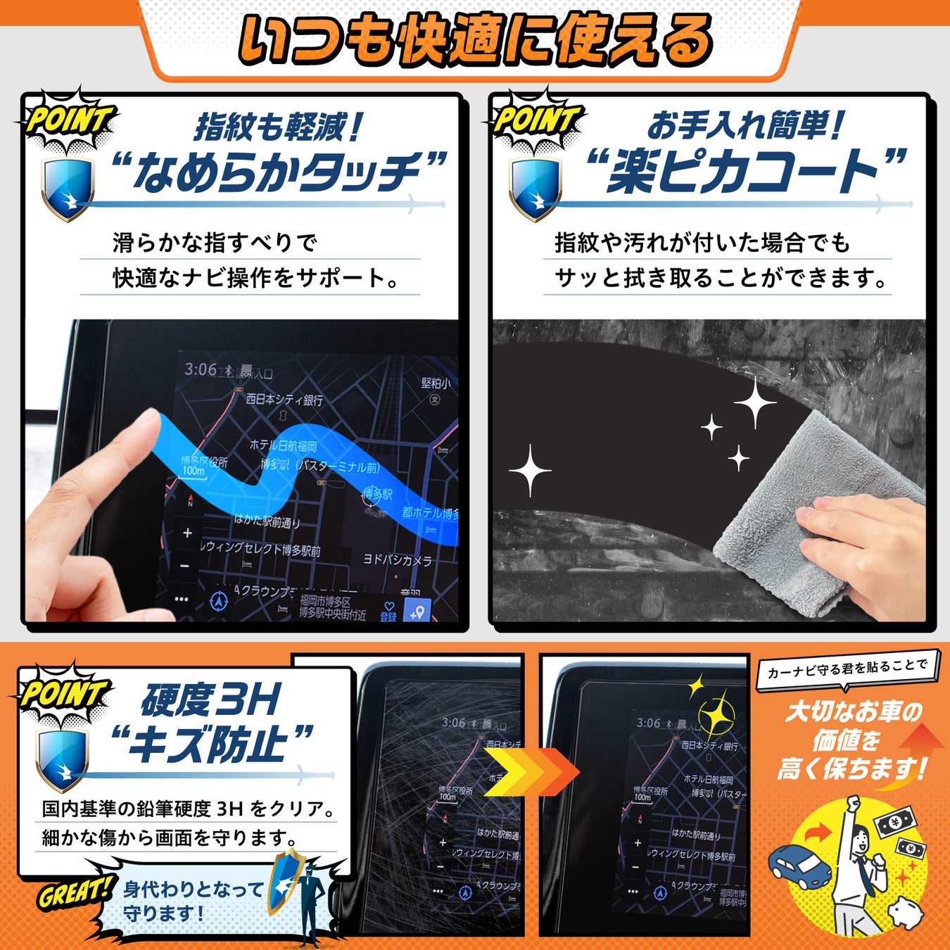 なめらかな指滑りで快適にナビ操作ができ、指紋や汚れが付いた場合でもサッと拭き取ることができます。