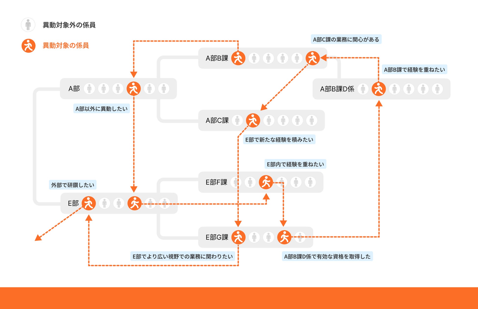 様々な職務経験を積むために、一定期間同じ部署での経験を積んだ係員を未経験部署へ配置転換