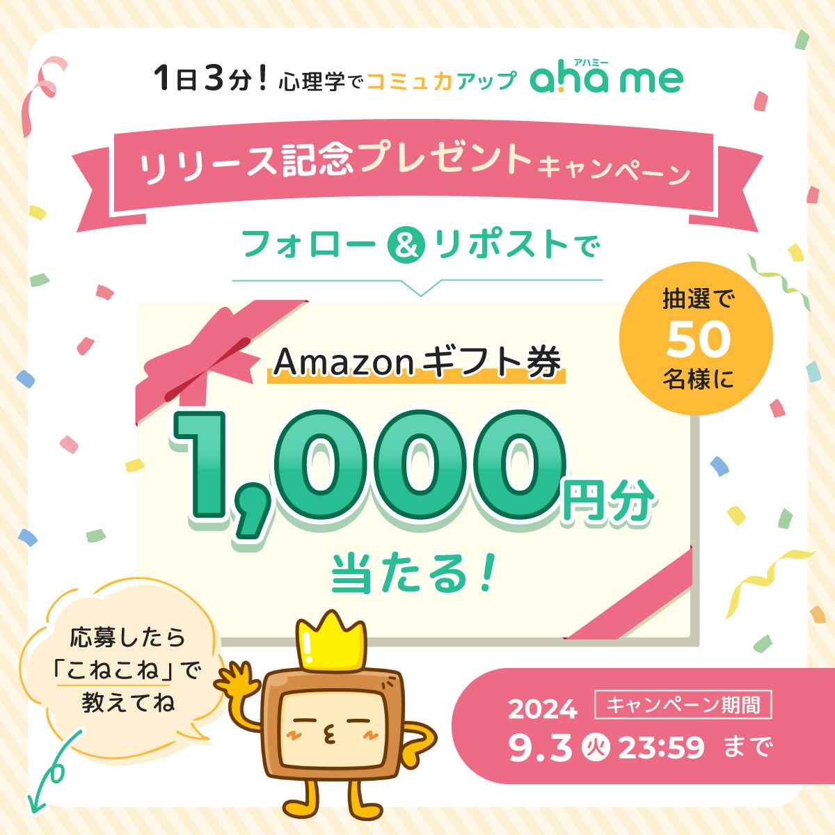 ■「1日3分!心理学でコミュ力アップ『ahame』リリース記念プレゼントキャンペーン」概要