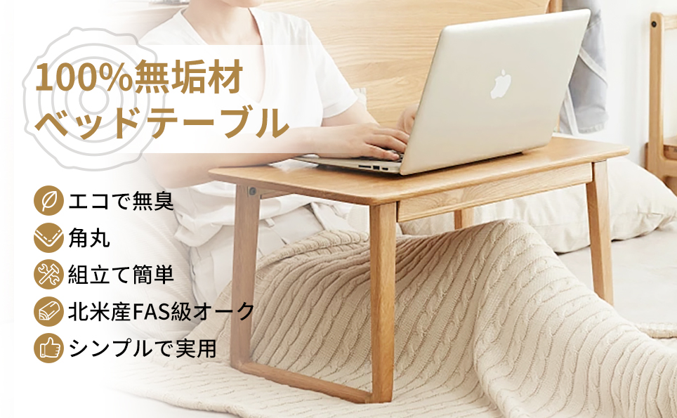 - 100%オーク天然木 ベッドテーブル ※25%OFF プライム会員限定割引