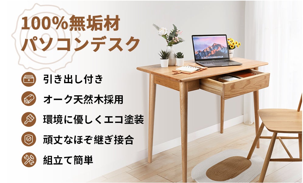 - 100%オーク天然木 パソコンデスク90cm ※20%OFF