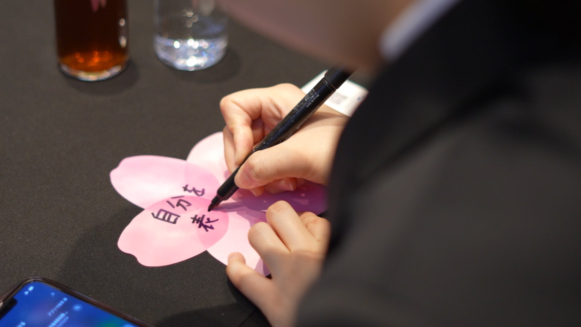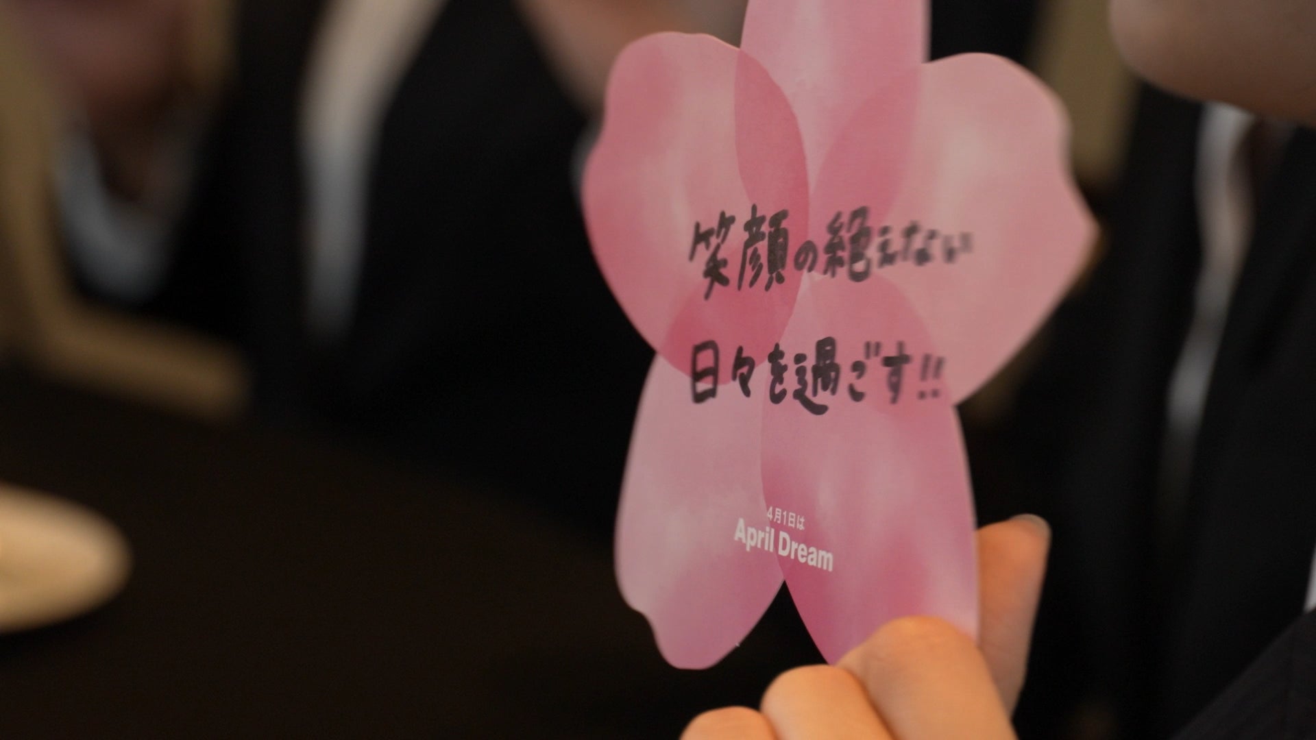 「April_Dream Project」の取り組みとして、新入社員が配付された桜のモチーフに「夢」を綴りました。新入社員が描いた「夢の桜」が会場を彩り、期待と決意で満開になりました。