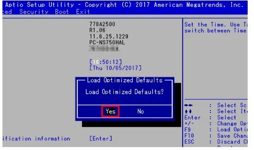 Step3:「Load Optimized Defaults?」を選び「Enter」キーを押します。