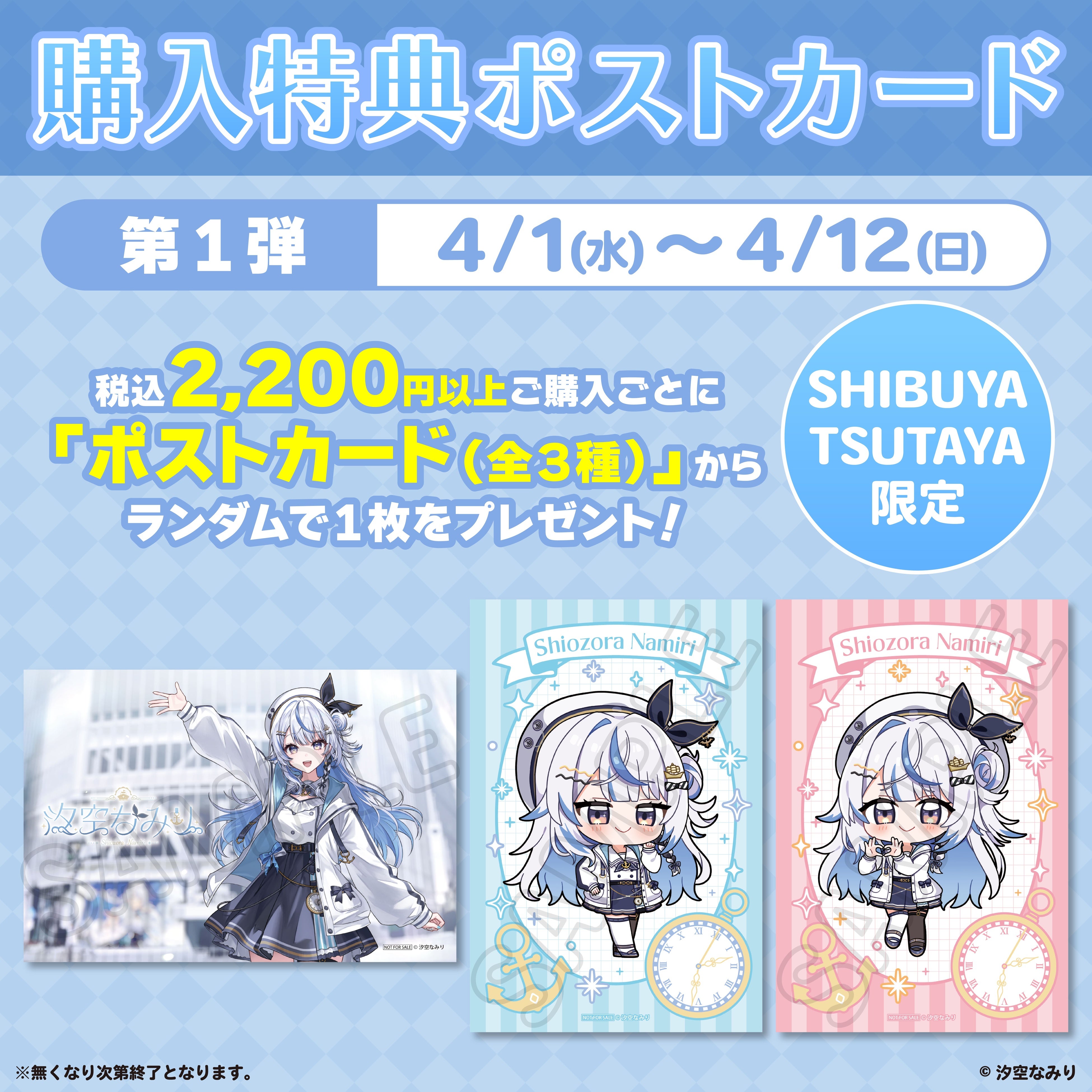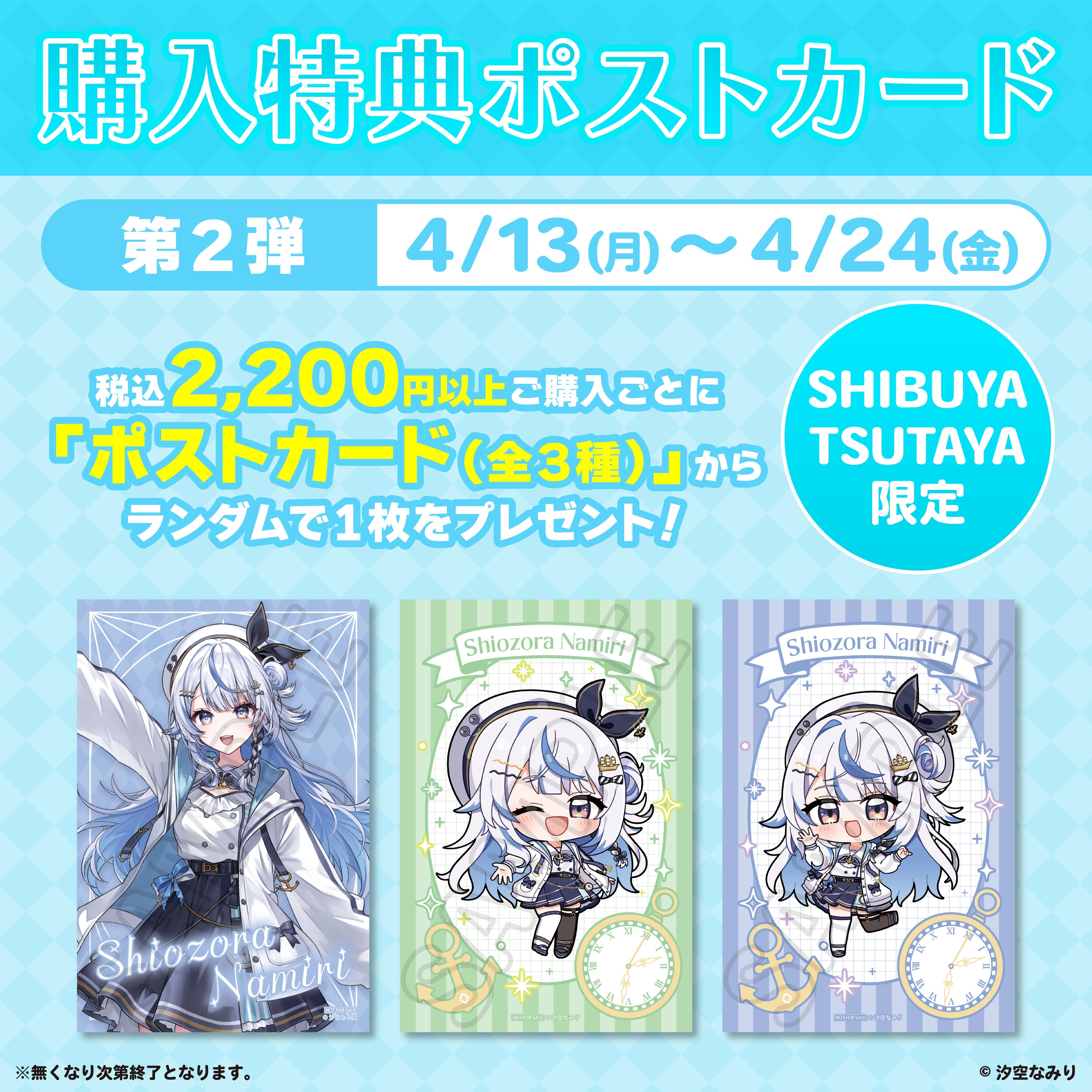 SHIBUYA TSUTAYA IP書店にて、汐空なみり関連グッズを1会計につき12,000円(税込)以上購入ごとに2ショット撮影会抽選応募券を1枚お渡しいたします。