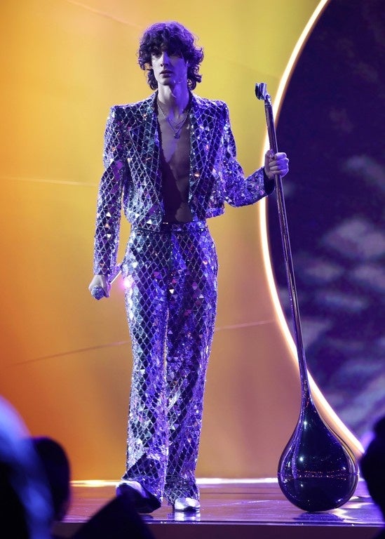 さらに授賞式で披露したパフォーマンスでは、ミラーパーツとラインストーンを全面に刺繍したルックを纏いました。