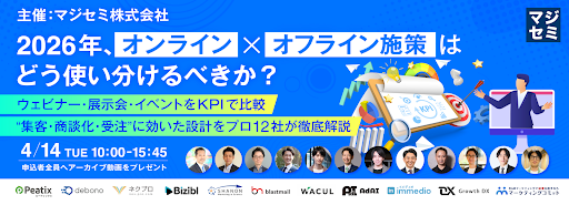 株式会社immedio(本社:東京都渋谷区、代表取締役:浜田 英揮)は、2026年4月14日(火)に開催されるオンラインカンファレンス「2026年、オンライン×オフライン施策はどう使い分けるべきか?」に登壇することをお知らせいたします。