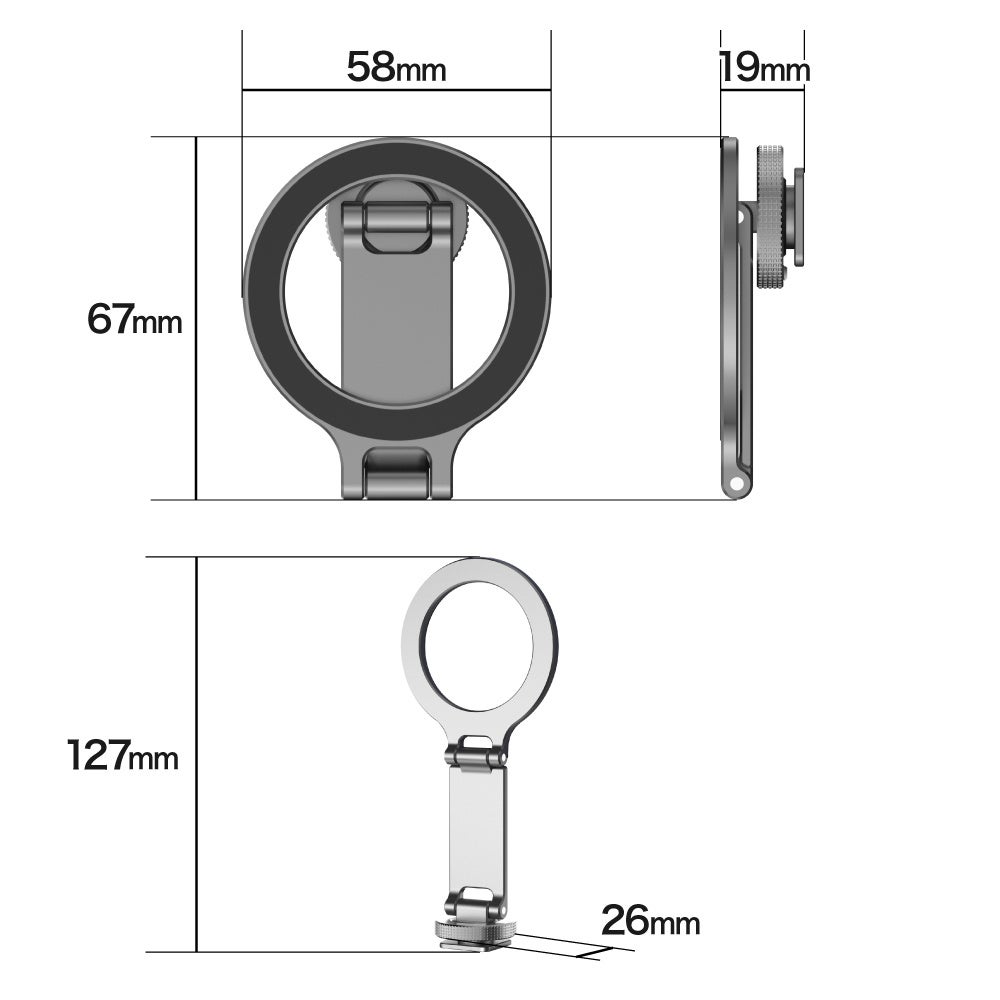 本製品はカメラのアクセサリーシューに取り付け可能なMagsafeスマホホルダーです。