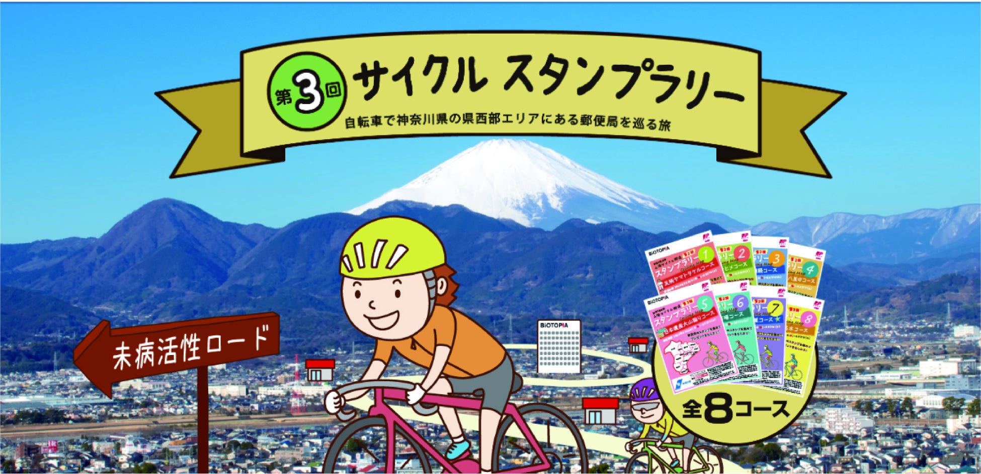 一般財団法人ビオトピア財団は日本郵便株式会社と協力し、2022年3月に締結した連携協定(※1)に基づき神奈川県の県西エリア(※2)で『第3回 サイクル スタンプラリー』を実施いたします。