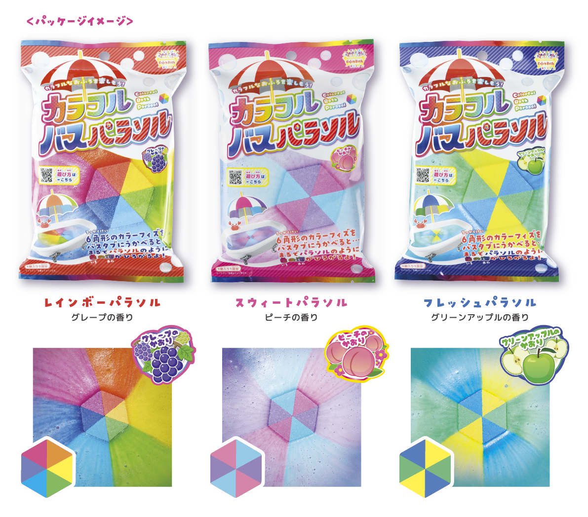 【 あそぶろ 】お風呂で遊ぼう!湯船に浮かべるとカラフルな泡が広がる、カラフルバスパラソルが新登場!