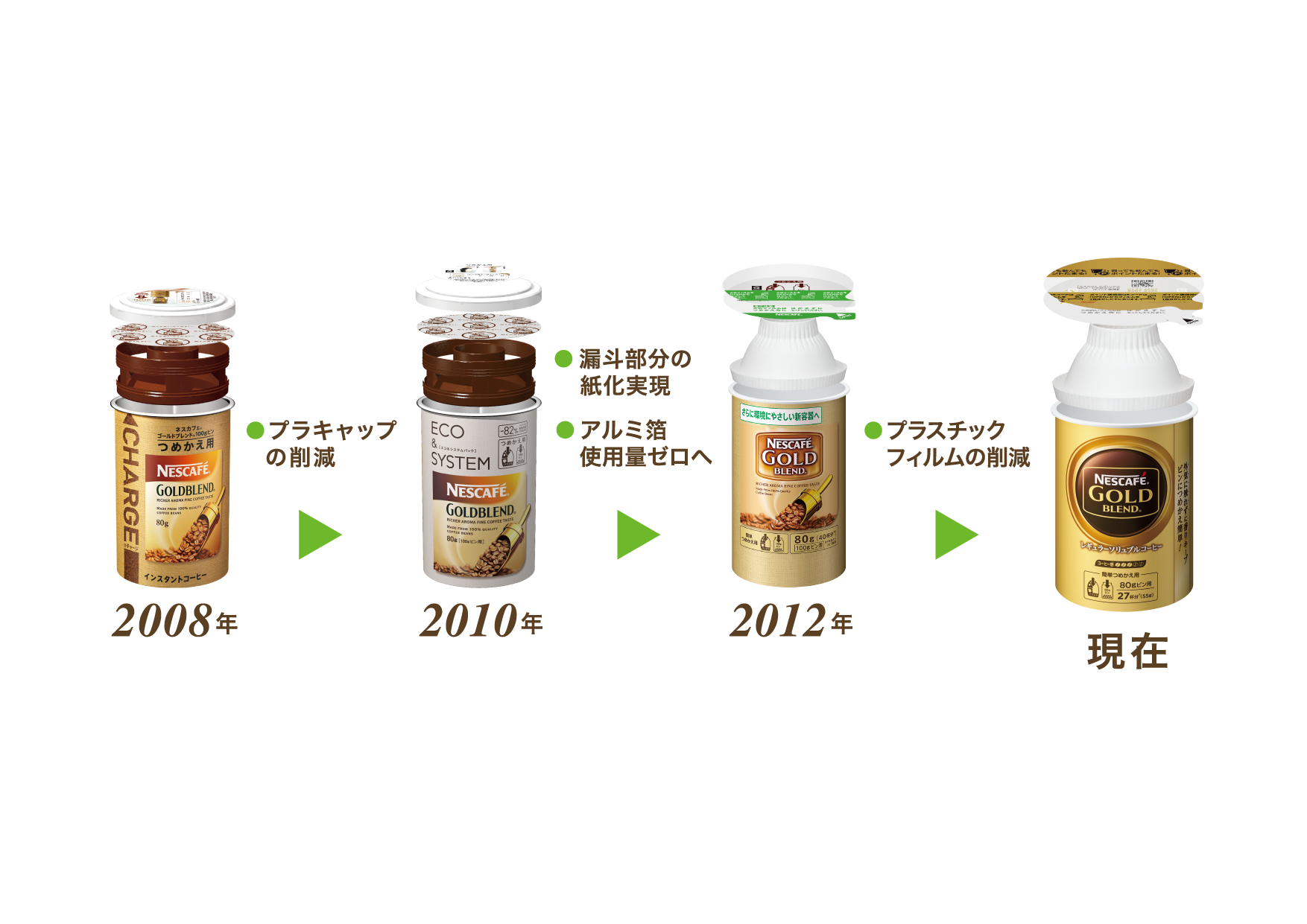 「ネスカフェ エコ&システムパック」のパッケージ素材改良の歴史