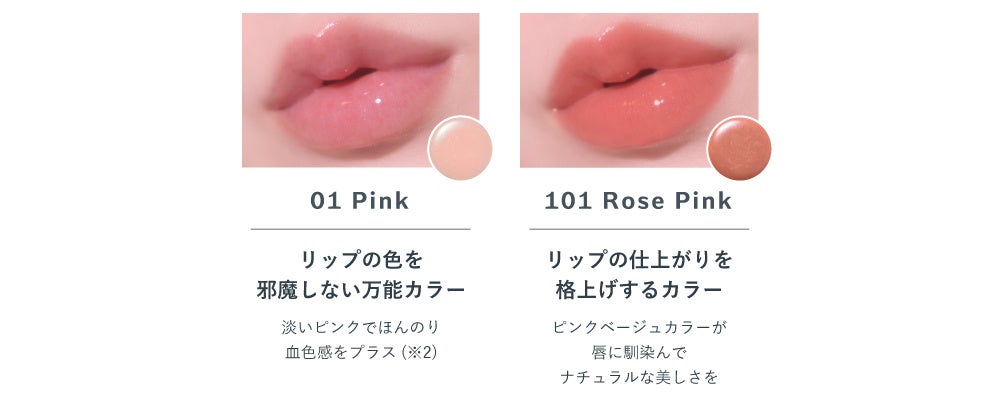 現在オンライン・店舗ともに発売中の定番カラー2色をご紹介。使い心地の良さと、唇をキレイに魅せるナチュラル発色で長年愛され続けています。