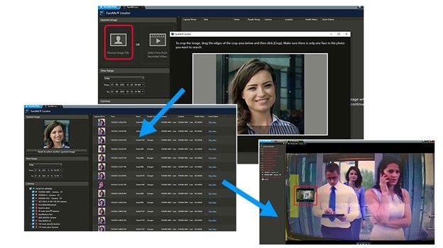 FaceMe® Locator は、対象者の顔画像を使用してイベントの日時を絞り込み、その人物が録画されたすべてのイベントをリストアップし、対応する動画再生を提供します。顔画像は、「アップロードされた画像」「録画映像からキャプチャされた顔」「ライブ動画ストリームからキャプチャされた顔」の3 つの方法から取得します。対象者発見後、Genetecのビジュアル トラッキング機能を利用して、カメラ間の経路を追跡します。