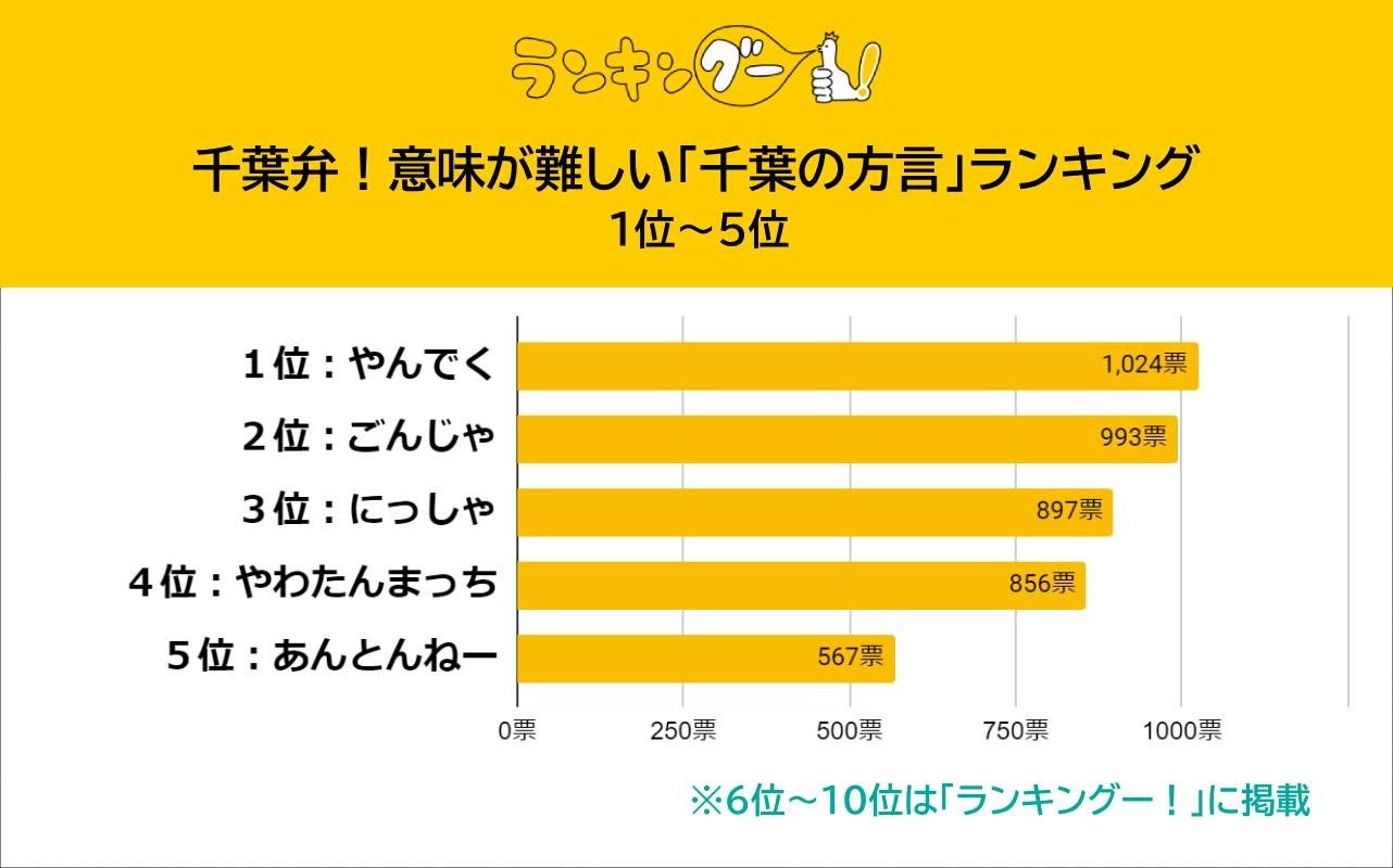 調査方法:株式会社CMサイトがインターネットリサーチした<千葉弁!意味が難しい「千葉の方言」ランキング>のアンケート結果を集計。