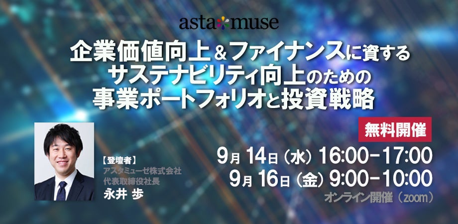 経営者・CFO向け無料セミナー開催!「企業価値向上&ファイナンスに資するサステナビリティ向上のための事業ポートフォリオと投資戦略」
