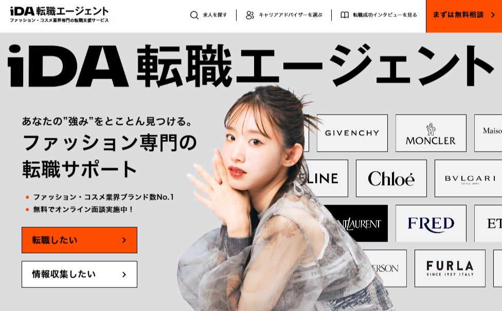 iDAはファッション・ビューティー業界に特化した転職支援サービスを提供しています。長年の実績から市場にまだ公開されていない求人情報も多数取り扱っている点が特徴です。