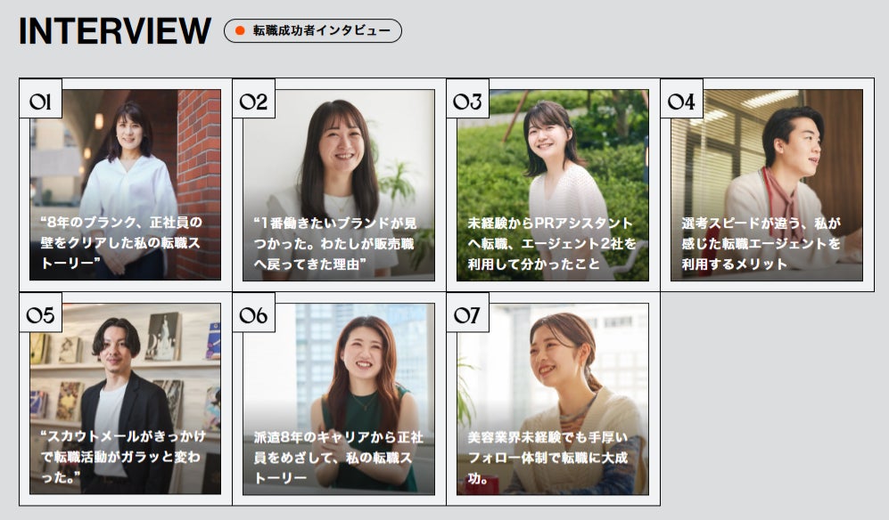 業界に関する豊富な知識と専門性を持つキャリアコンサルタントが、求職者のニーズに合わせ、企業選定から書類作成、面接対策までの転職活動全般をサポートします。サイトでは、キャリアチェンジを目指す方にとって有益な情報源となるよう、実際に転職を成功させた求職者や企業の声を紹介しています。