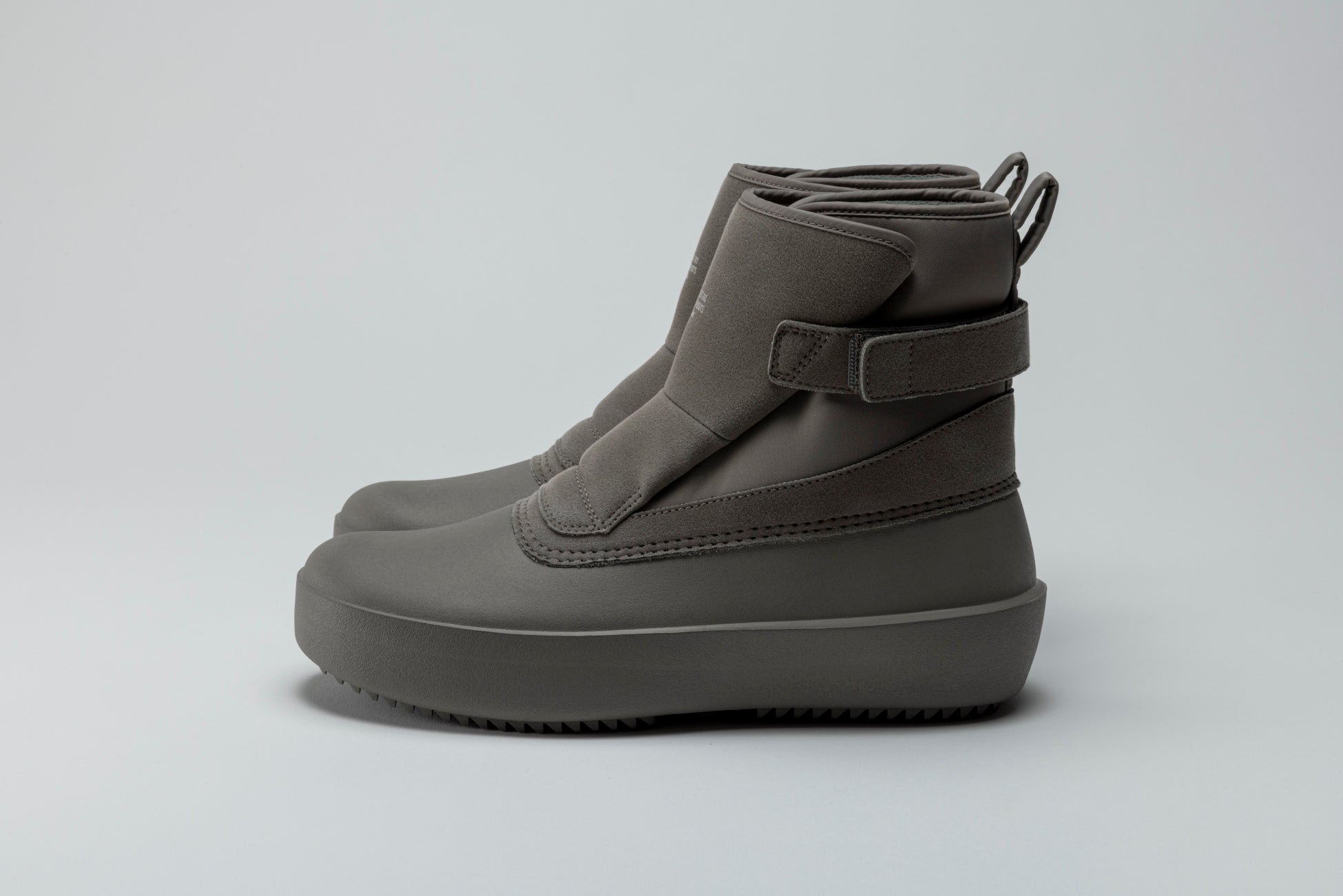 南極観測隊をルーツに持つウィンターシューズ製造のノウハウをデイリーユースに。着脱が簡単なアッパー構造と、軽量で防水性のある立体成型EVAのソールを組み合わせた仕様。靴底に氷上で優れた防滑性を発揮するガラス繊維配合ラバーを搭載したミニマルなブーツタイプ。