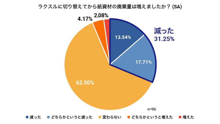 ラクスルに切り替えてから紙資材の廃棄量が減ったと回答した方は、31.25%となりました。