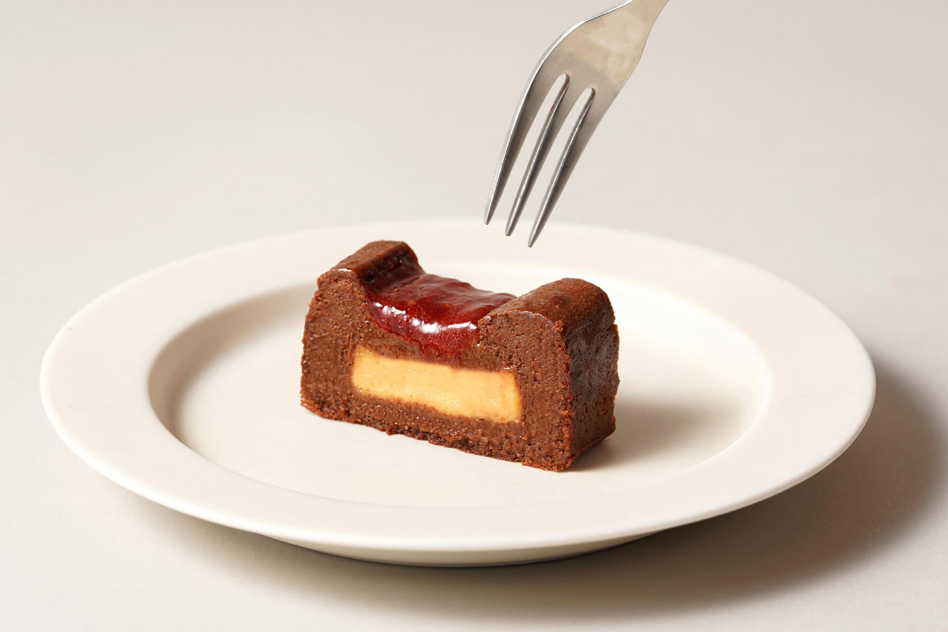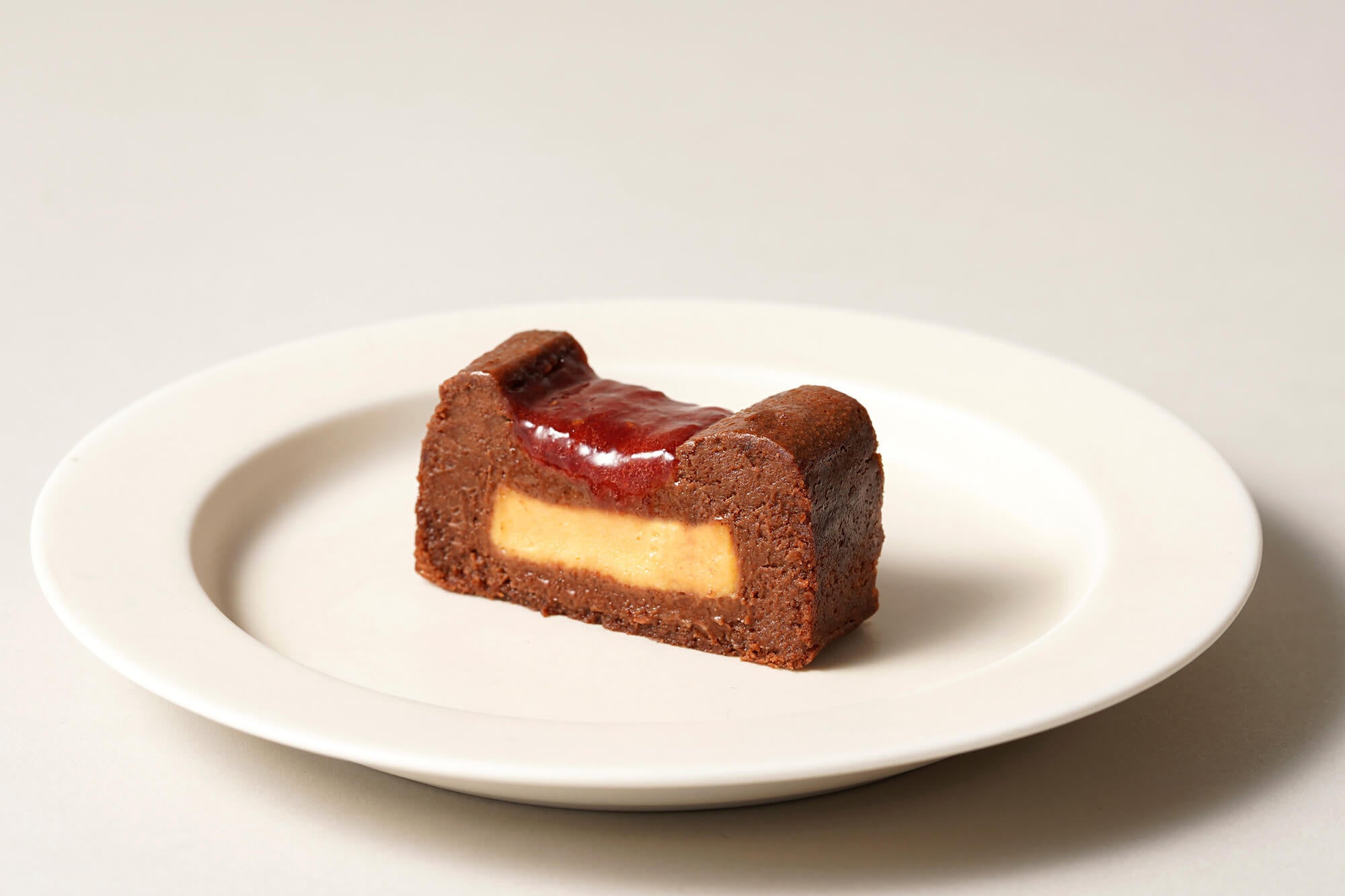 香川県の農家「いちご家めい」から特別に仕入れている、国内で1%程しか作られていない貴重な苺“女峰”を使用。「いちご家めい」が改良を重ねて実現した女峰は、他の女峰とは一線を画します。その女峰はまさに「女峰の頂」と言え、大粒で高い香気と、甘みと酸味が絶妙にバランスした素晴らしい味わいが特徴です。その素晴らしい香りと酸味を最大限引き出すために、粒をしっかり残すように煮詰めた、芳醇で甘酸っぱい凝縮感をもたせた苺ジャムをトップに使用しています。