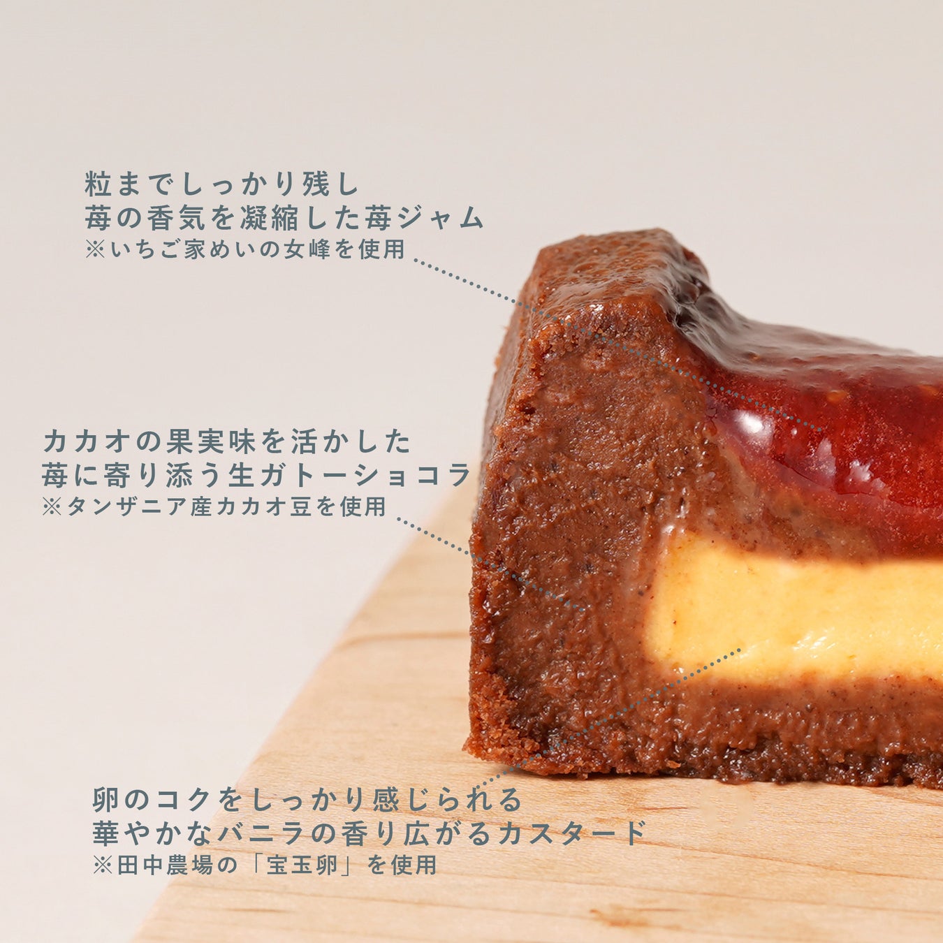 ・苺の味わいに寄り添う、タンザニア産カカオ豆を使ったチョコレート生地