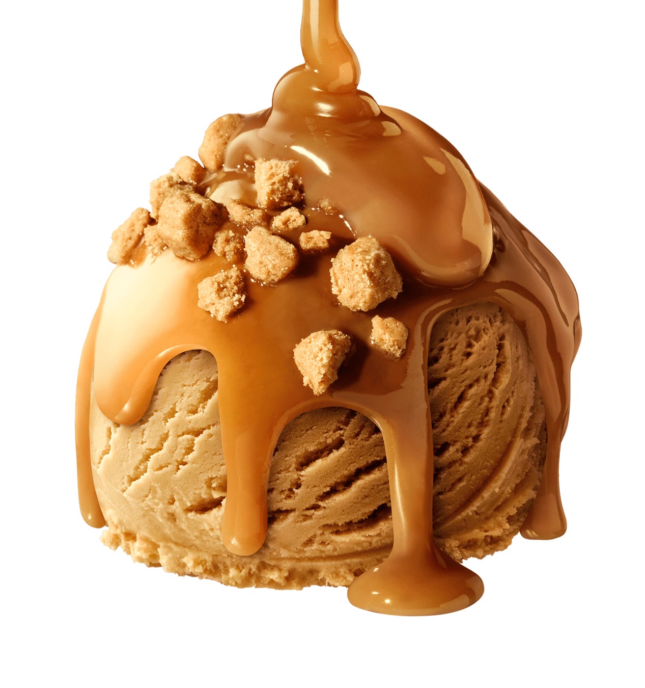 キャラメルアイスクリームにビターキャラメルソースを混ぜ込み、キャラメルソースにまみれたねっちり食感のバタークッキーをのせました。