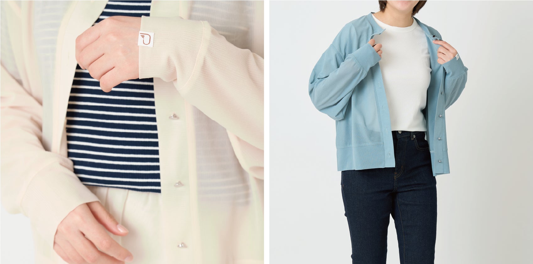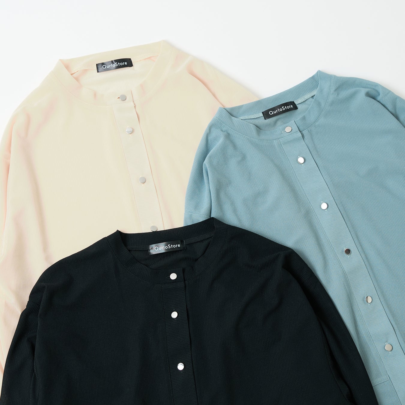 汎用性の高いブラックとアイボリー、爽やかなライトブルーの3カラーで展開。夏の羽織りものにぜひお使いください。