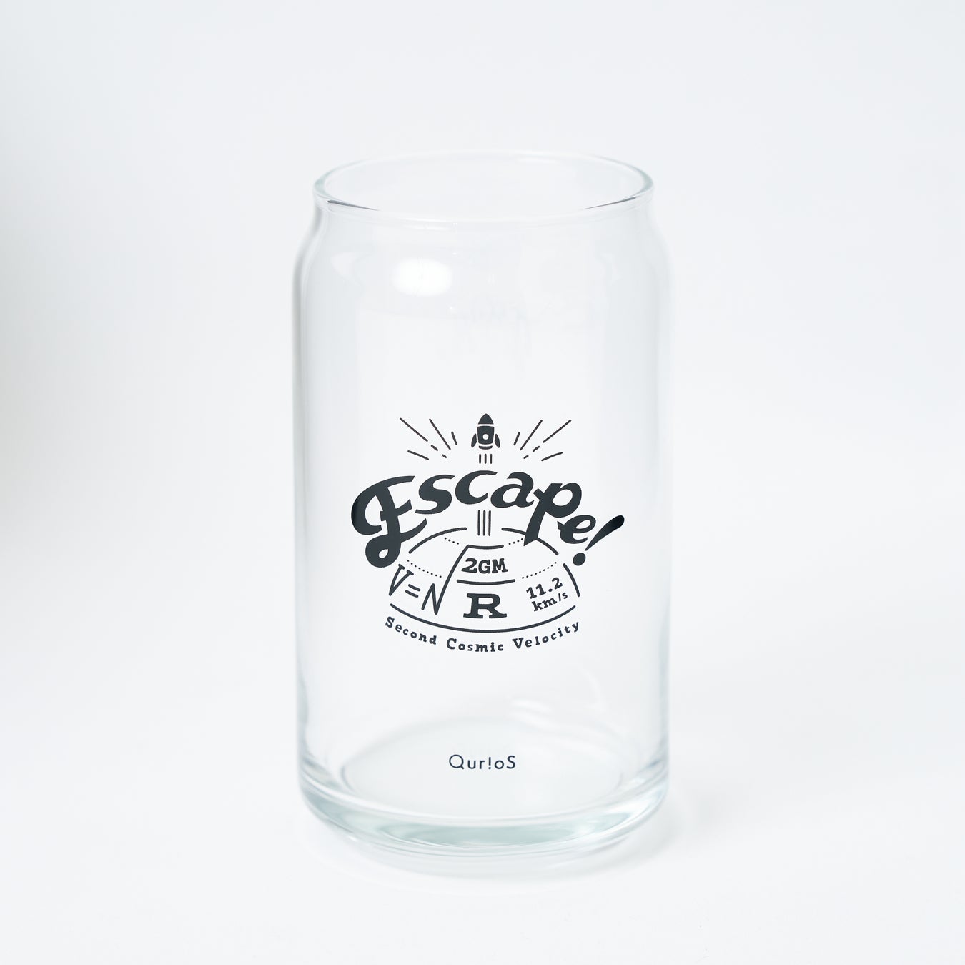 物理の「第二宇宙速度」をポップなイラストにした缶型のグラスです。第二宇宙速度とは、地球の引力を脱するのに必要な速度の最小値のことで、「脱出速度」とも言います。地球を脱出するロケットと速度を表す数式をデザインしました。