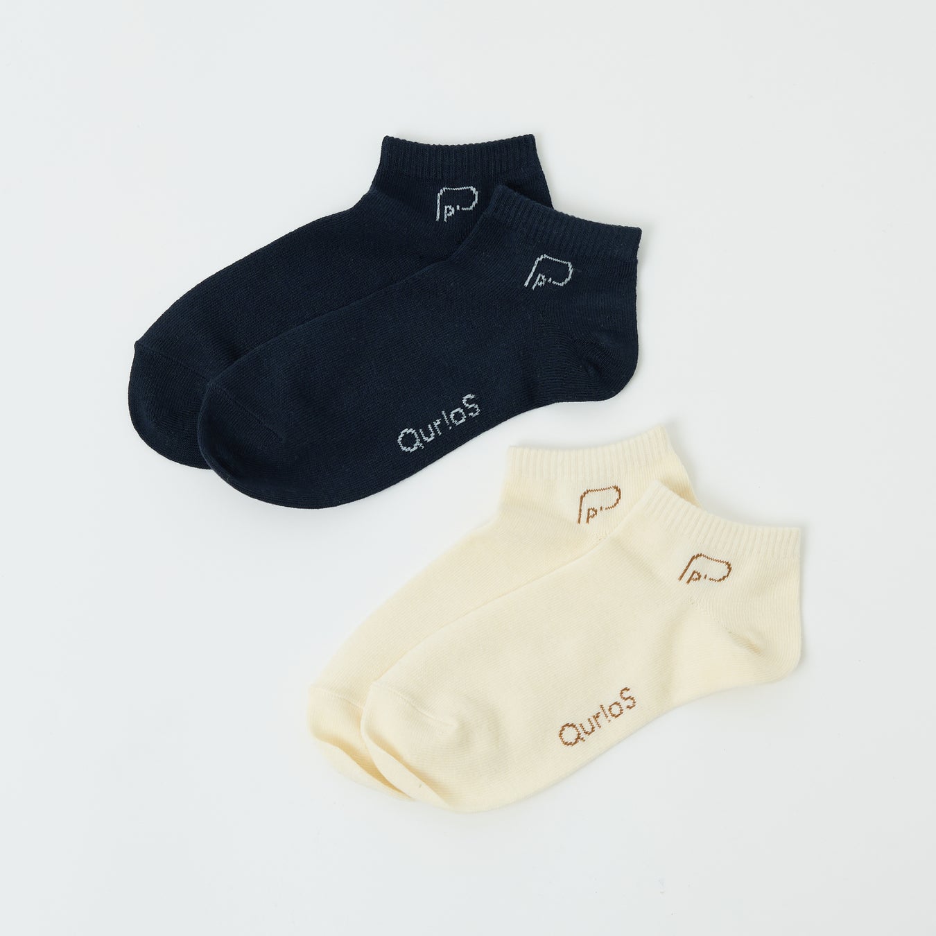 "点P"シリーズのスニーカーソックスです。アンクル部分に点Pのモチーフがあしらわれた、シンプルなデザインです。ネイビーとアイボリーの2カラー展開。