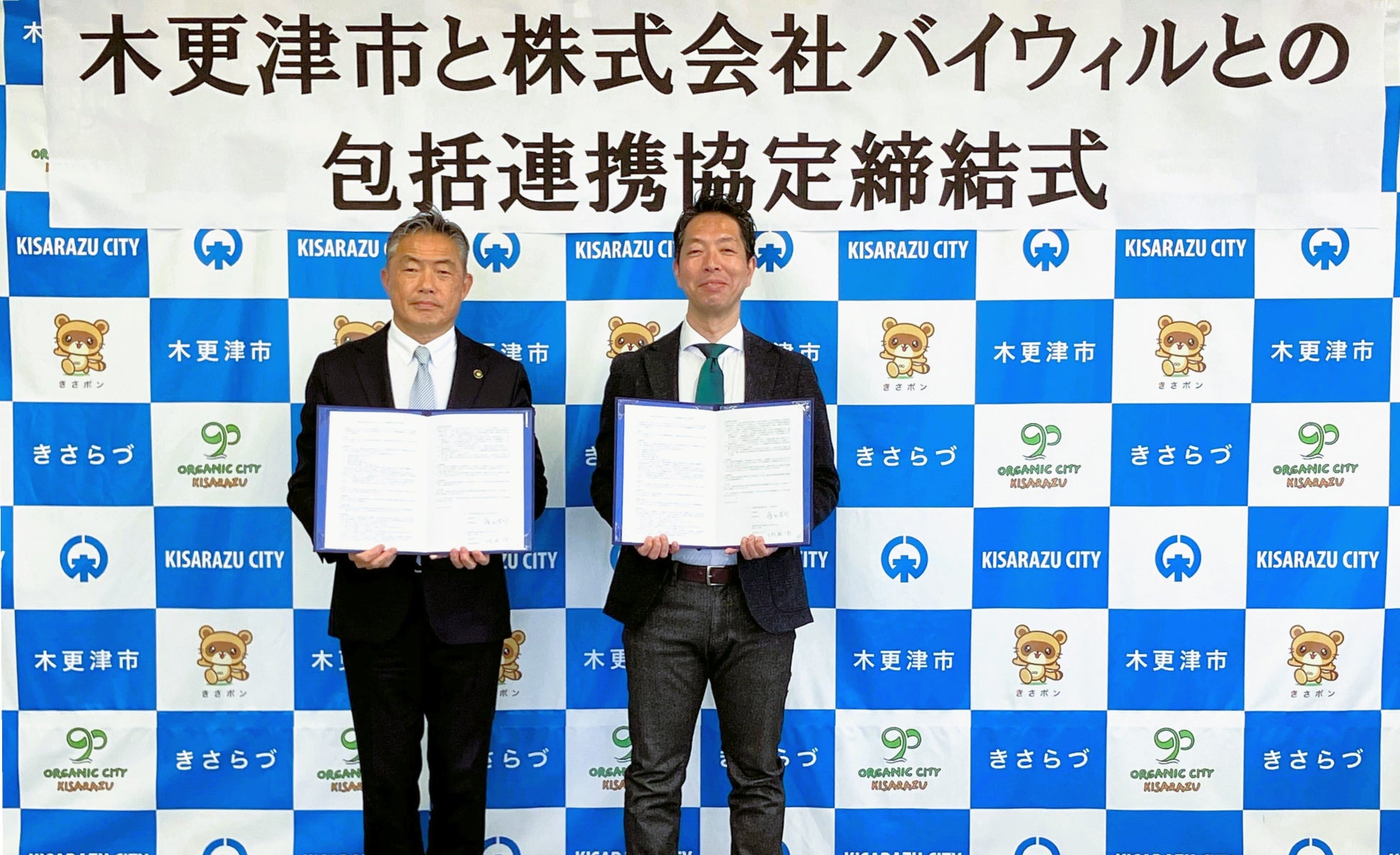 日本全国47都道府県のカーボンニュートラル実現を目指す株式会社バイウィル(本社:東京都中央区、代表取締役社長:下村 雄一郎、以下「バイウィル」)は、千葉県木更津市(市長:渡辺 芳邦、以下「木更津市」)と、「木更津市と株式会社バイウィルとの包括連携に関する協定書」を締結しました。