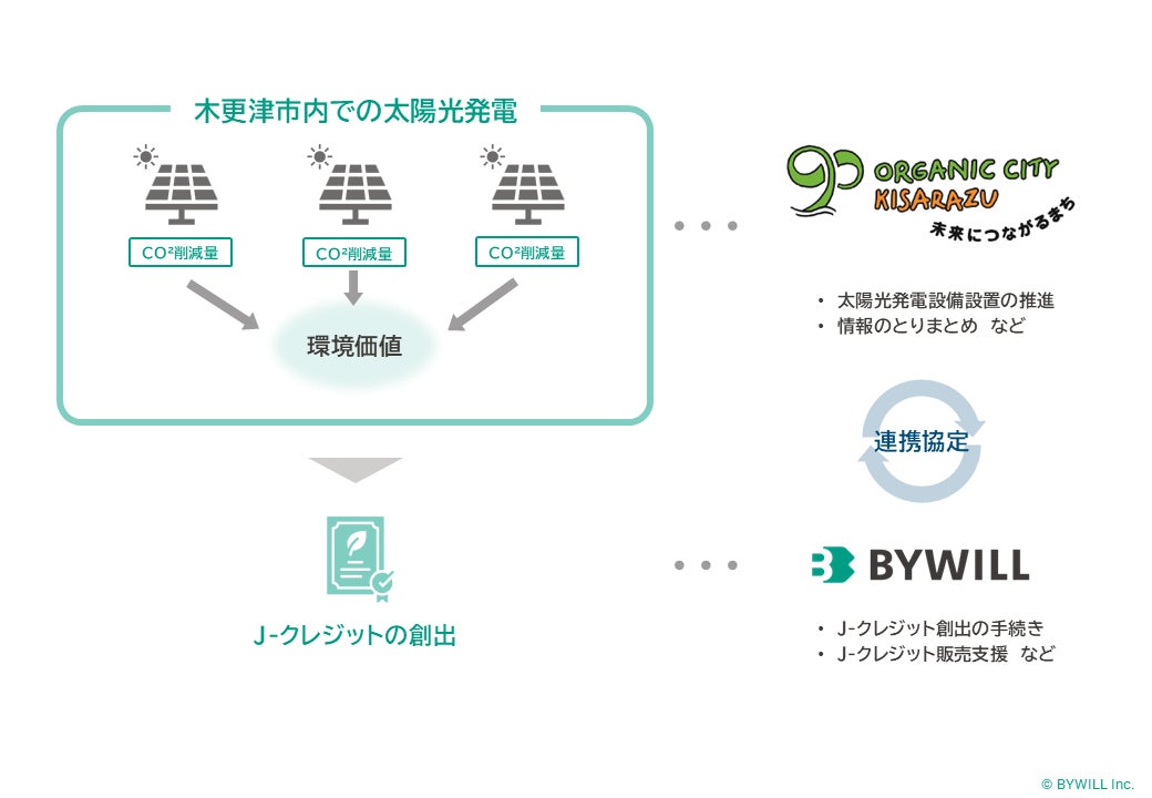 バイウィルは、木更津市におけるJ-クレジット創出プロジェクトの登録・申請からモニタリング、創出したクレジットの販売までをシームレスに支援し、「地産地消」によって千葉県をはじめとする地域の脱炭素化を促進します。