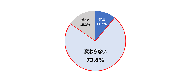コロナ禍で給料は「増えた」が11.0%、「変わらない」が73.8%、「減った」が15.2%。