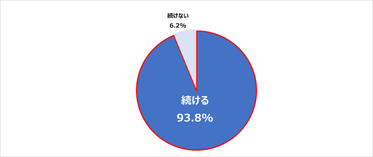 「続ける」が93.8%、「続けない」が6.2%。