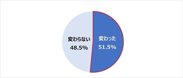 コロナ禍で勤務内容は「変わった」が51.5%、「変わらない」が48.5%。