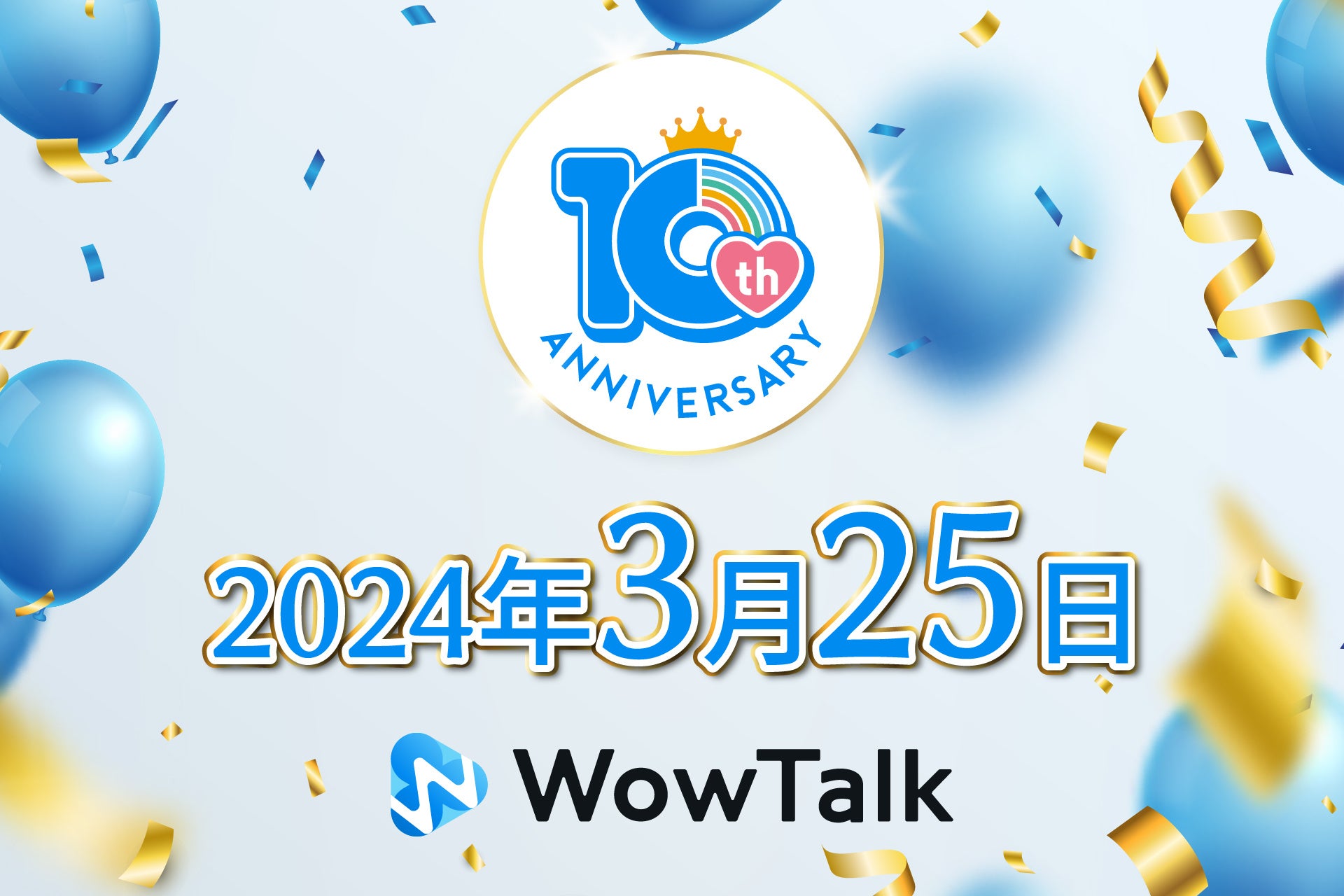 2014年3月にサービス提供を開始したWowTalkは、2024年3月25日をもって10周年を迎えました。「直感的な操作性」「導入教育いらず」「数万規模の導入実績を誇る安全性」という特徴を持ち、今や50万以上のユーザー、累計10,000社が利用するビジネスチャット・社内SNSへと進化して参りました。