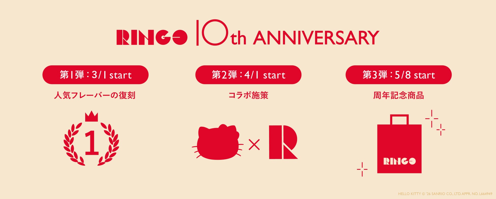 【周年企画】愛され続けて10年…RINGOが贈るとっておきの期間 |人気No.1商品の復活、ハローキティとのコラボ、記念商品も登場!特別プロジェクト「RINGO 10th ANNIVERSARY」