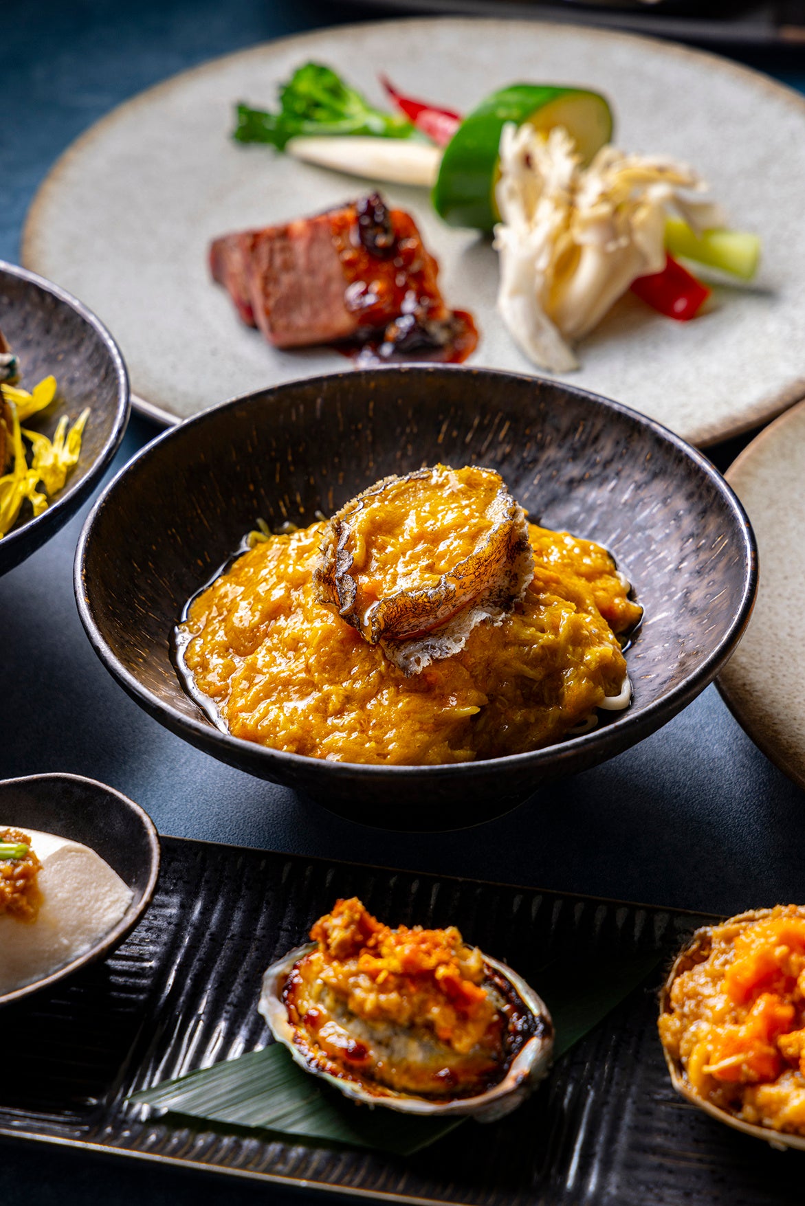 蝦夷鮑と上海蟹味噌入り茶碗蒸し