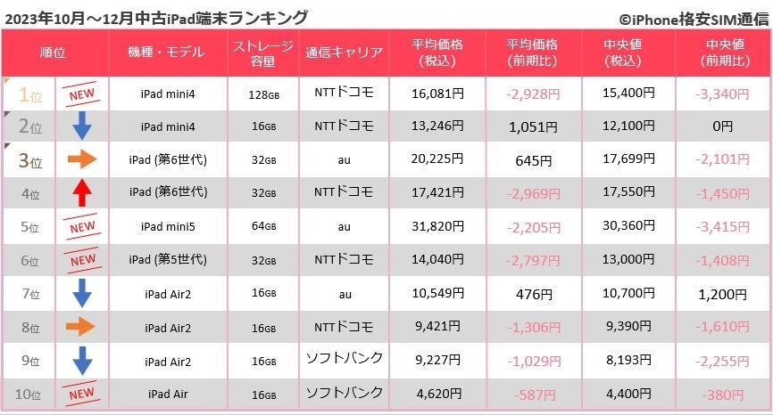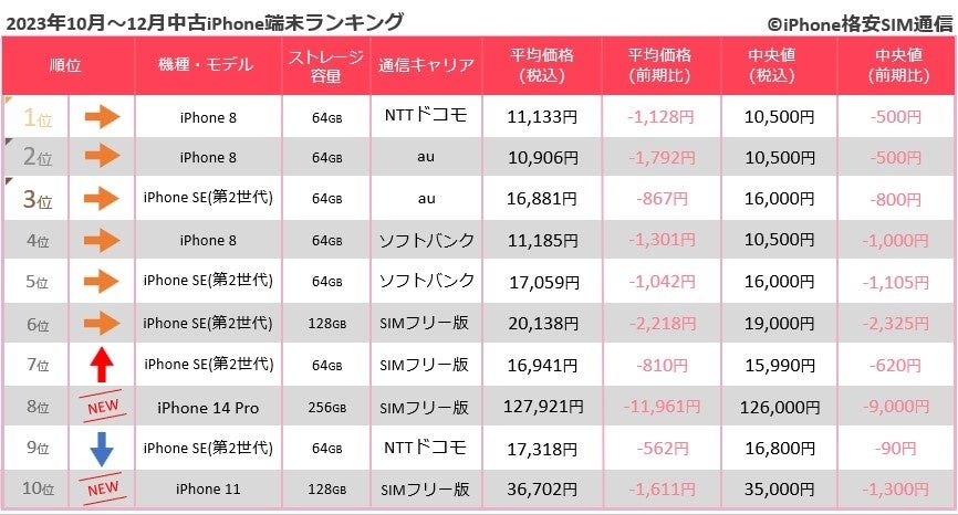 2023年10月〜12月中古スマホ取引数ランキング