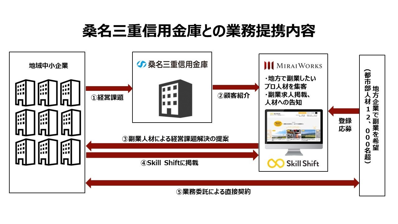 今回の提携により、自らのスキルを地域貢献に活かしたいプロフェッショナル人材と、桑名三重信用金庫のお取引企業をマッチングすることにより、関係人口(※1)の創出・増加、人材流動化やスキルシェアにつなげ、日本経済の活性化に貢献して参ります。