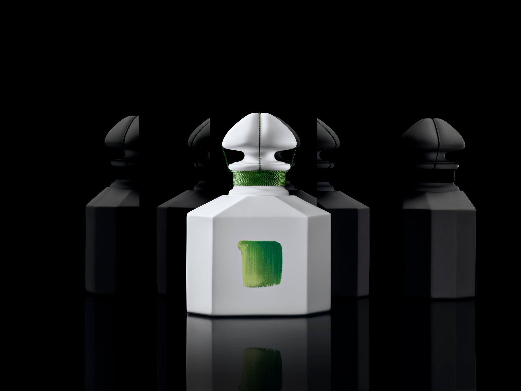 バランス、自然、再生のシンボルである緑は、アートと環境への取り組みにおいて志を同じくする李とゲランのコミットメントを反映しています。