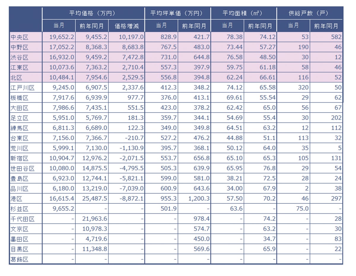 当社が調査した2024年7月の東京23区、行政区別分譲実績データ(速報値)です。
