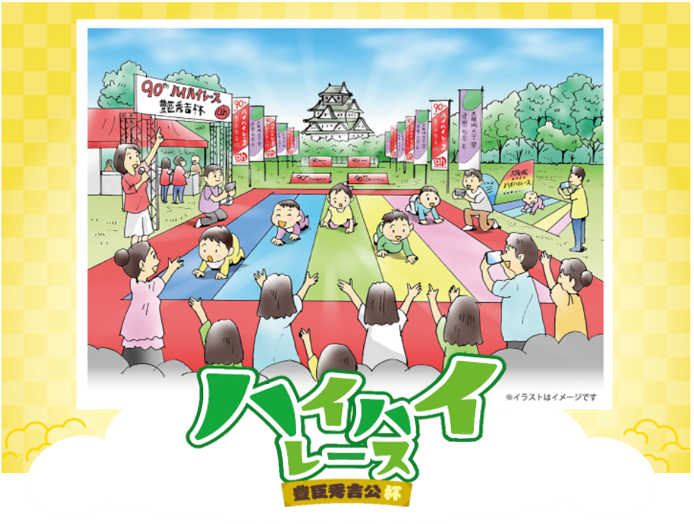 大阪の企業であり、大阪から生まれた「赤ちゃん本舗」が、大阪の中心で長く愛され続ける「大阪城天守閣」と共に、90周年という節目にコラボレーションします。これまでコロナ禍で様々なイベントが中止になる中、『大阪からの子育て支援』として、屋外での今しかできない思い出づくりとなるよう特別企画のハイハイレースを開催いたします。