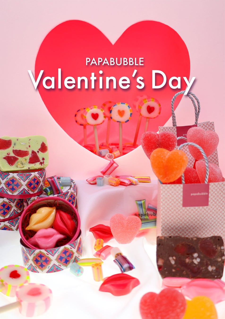「世界一おもしろいお菓子屋さん」アート・キャンディ・ショップ「PAPABUBBLE/パパブブレ」は、現代の多様化するバレンタインニーズに合わせたバラエティ豊かなバレンタイン限定のキャンディ/グミ/チョコレートを発売します。