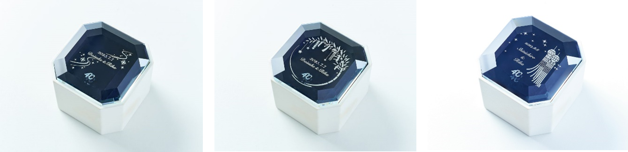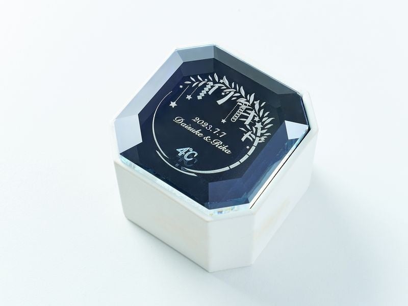 かけがえのない絆で結ばれたおふたりを祝福する、七夕だけの特別なフェアを開催。期間中、ブライダルリングをご成約いただいた方は、オリジナルジュエリーボックスのガラス面に、七夕限定デザインの刻印をお選びいただけます。